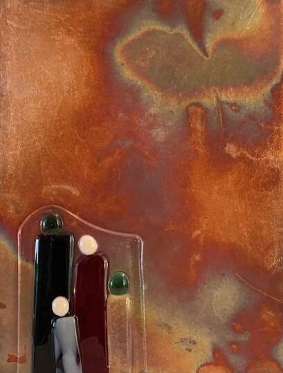nummer 221. koperplaat met glas. 15 x 20 cm. Staand object.